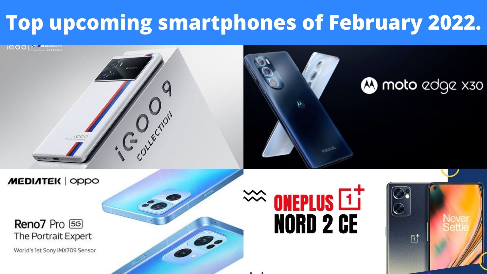 Top upcoming smartphones of February 2022. Vivo iQOO 9, Moto Edge X30 5G, OPPO Reno 7, OnePlus Nord 2 CE, ASUS Rog 5S